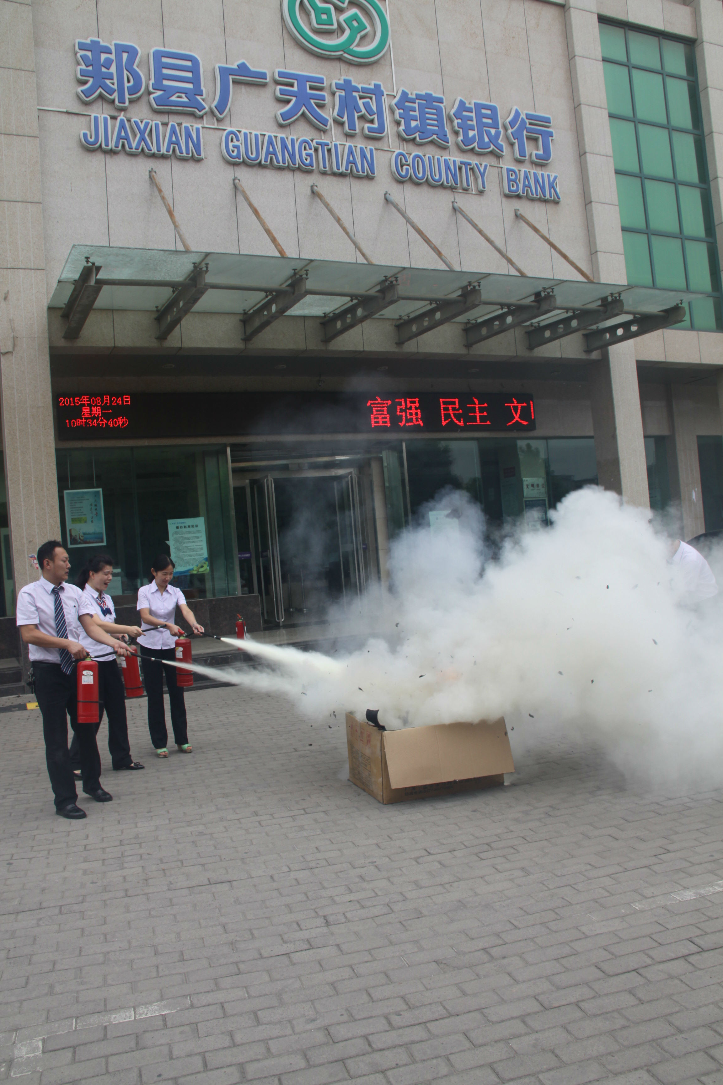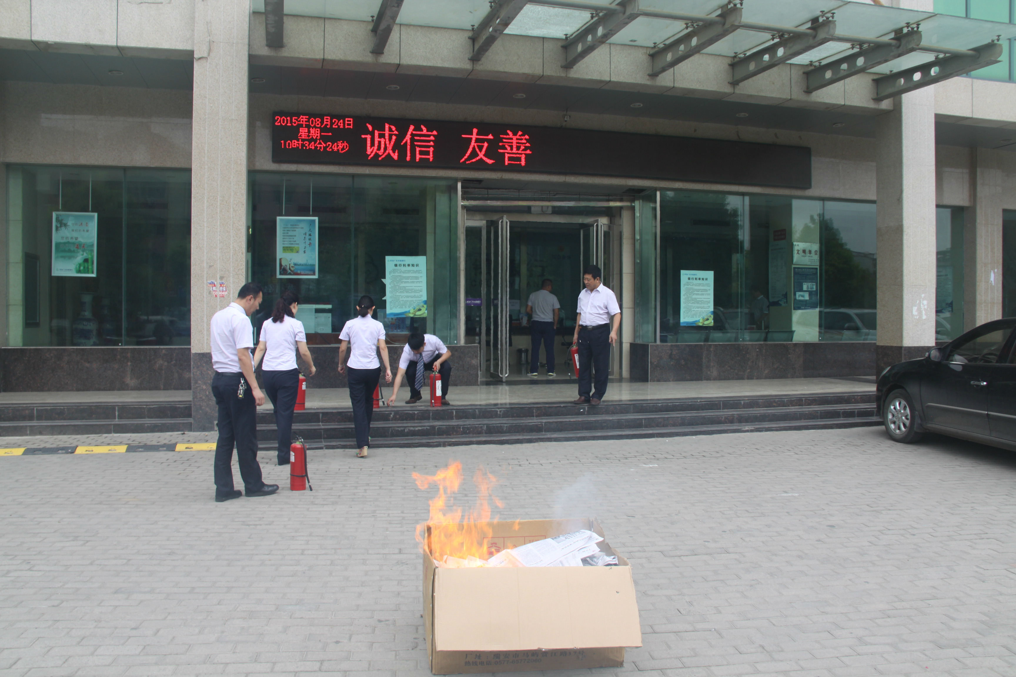 为切实提高营业网点突发事件处置能力,加强风险防控,使全体员工熟练掌握应急处置火灾事件能力。在总行的统一部署下,各支行网点进行了消防应急预案演练。演练工作从熟悉预案到近似“实战”的演练共用时近2个小时,员工个个热情高涨,动作认真,取得了预期效果。