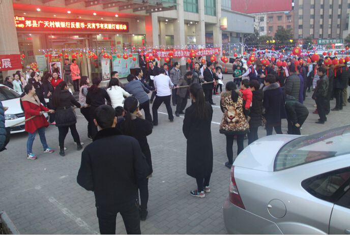 为了增强我行团队之间的凝聚力、提高员工身体素质、丰富员工业余生活、诠释村镇银行家园文化,在行领导的精心安排下,科技部、综合部组织协调下,我行于2月22日开展元宵节拔河比赛。